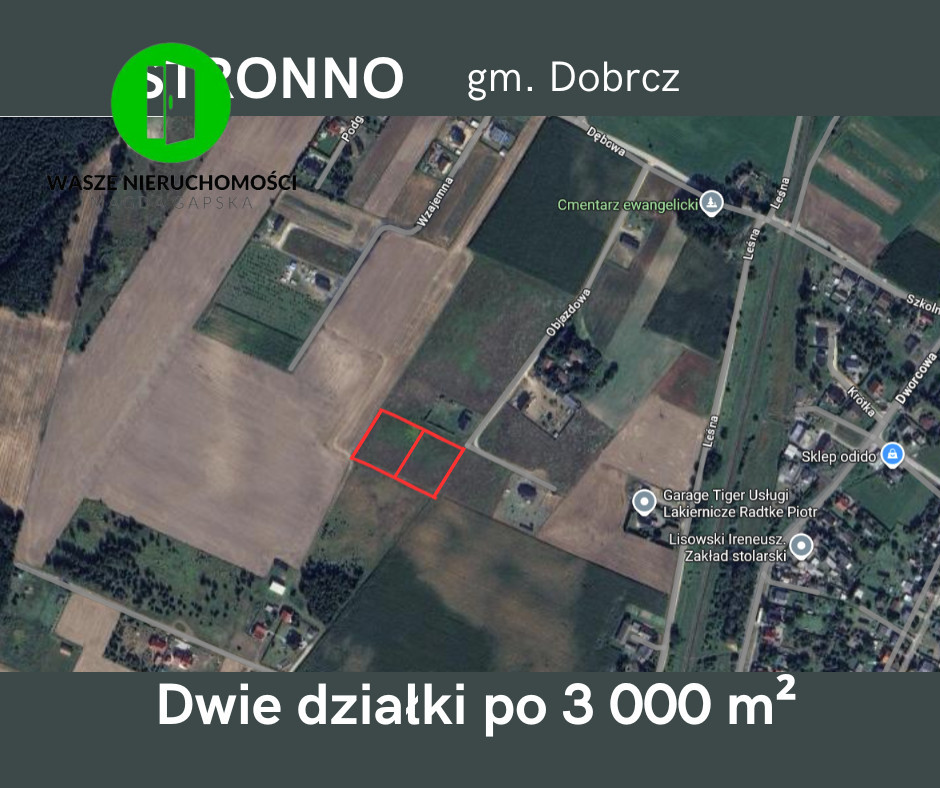 LOKALIZACJA Stronno - miejscowość położona w gminie Dobrcz. Bardzo zielona i jeszcze nie dotknięta miejskim zgiełkiem. Miejsce bardzo dobrze skomunikowane z miastem Koronowo, Bydgoszcz oraz Dobrcz za pomocą autobusów oraz kolei PKP.