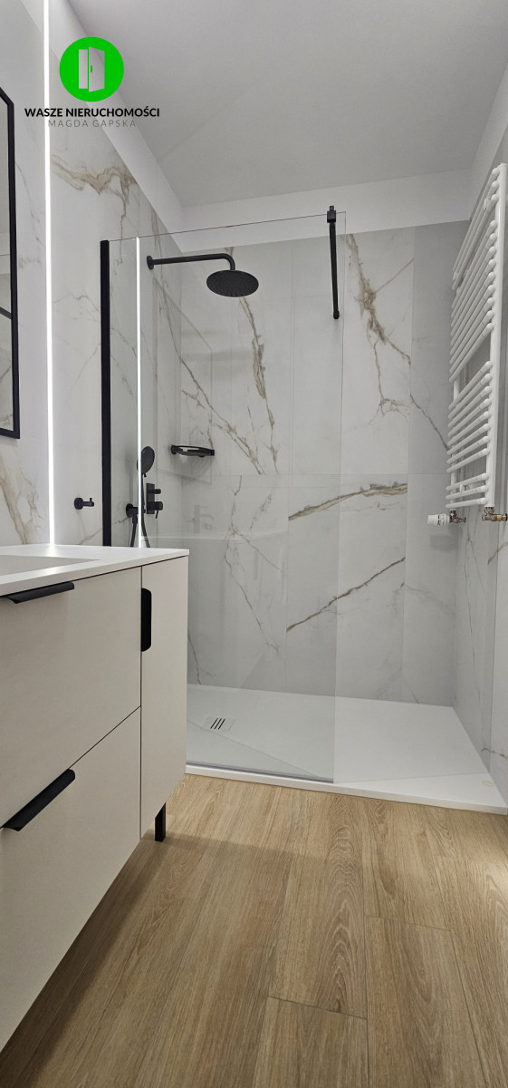 - łazienka z prysznicem i zabudową meblową o pow. 4,3m²